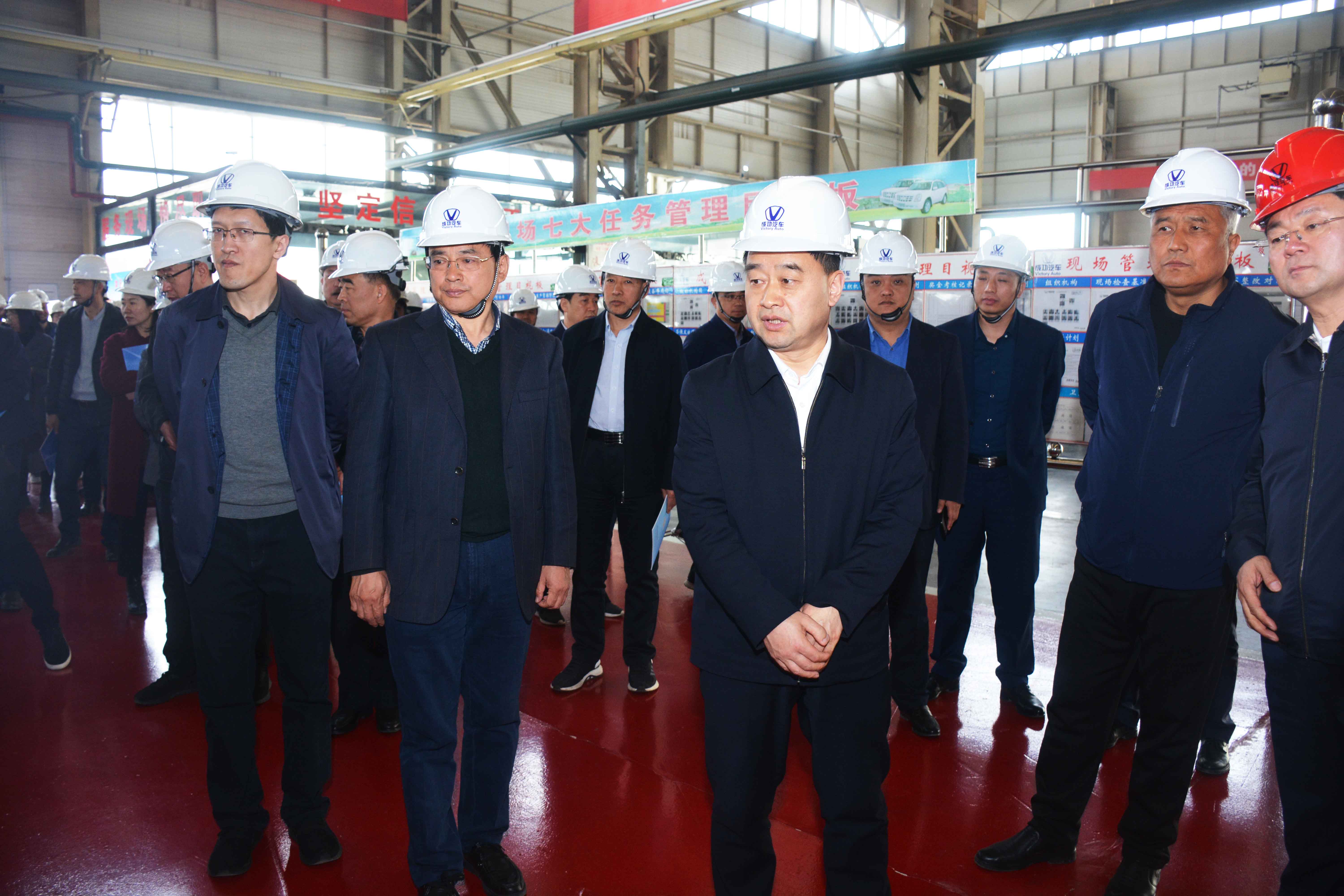3月19日上午,由长治市财政局局长贾软贤率队的“百人团”深入成功汽车进行参观。据了解,此次“百人团”是长治市财政局副科级以上人员、局属单位班子成员组成,威廉希尔中文网站总裁马国利、成功汽车事业部副总经理王景雨、长治车厂总经理吴丰陪同参观了成功汽车四大生产线,并向“百人团”介绍了成功汽车从冲压、焊装、涂装、总装工艺流程。贾软贤等相继试驾体验了成功新能源汽车,此后,在成功汽车二楼3号会议室和报告厅分别进行了座谈交流。