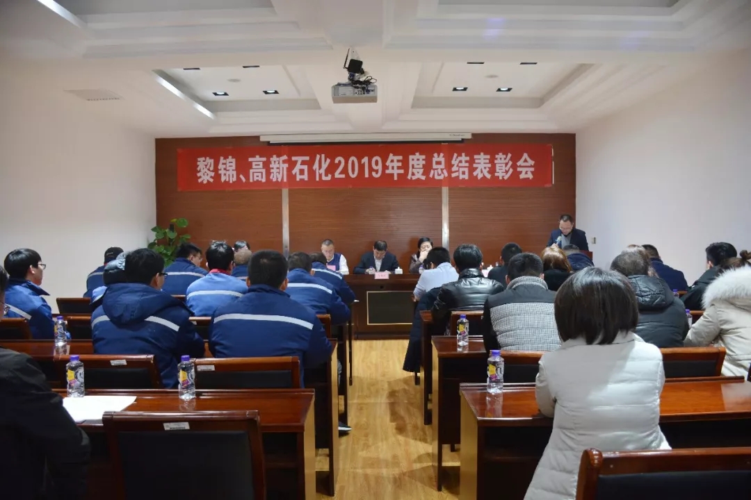 1月15日下午,黎锦房地产、高新石化两家公司联袂在威廉希尔中文网站四楼会议室召开2019年度总结表彰会。集团总裁、总裁助理及黎锦房地产、高新石化员工30余人参加了会议。会议由总裁助理狄国文主持。