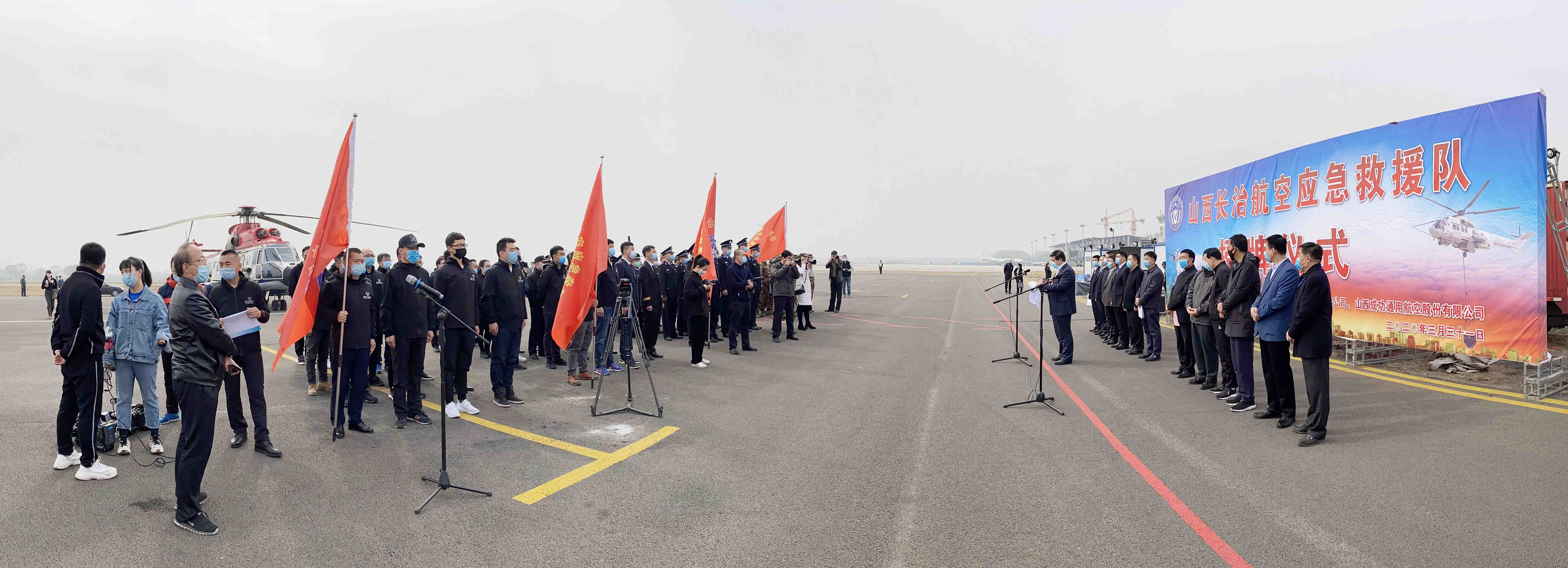 长治市副市长张和平说,今天在长治王村机场隆重举行授牌仪式,这是全省的一件大事,也是一件好事,对此表示热烈的祝贺。就长远看,对航空应急救援管理工作提出了更高的要求,要加强应急管理力量,坚决响应省委、省政府对通用航空的指示精神,提高业务能力,强化队伍建设,做好航空应急救援。他希望全省首家航空应急救援队要肩负探索新型救援的路径,担当重要的空中救援与陆地救援联动的结合模式,勇挑重担,不辱使命,为上党老区、三晋大地保驾护航。