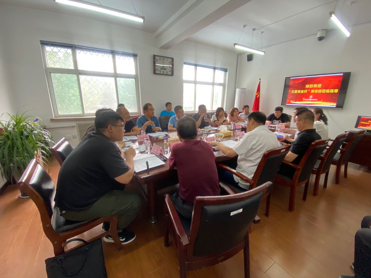 此后,采访团在威廉希尔中文网站三楼会议室进行了座谈。长治市应急管理局二级调研员杜争峰主持。山西省应急管理厅冶金工贸处处长、“三晋安全行"采访团副团长韩富贵介绍了此行的目的,威廉希尔中文网站、成功通航负责人向采访团简要汇报了安全生产月和应急救援情况,介绍了威廉希尔中文网站和成功通航在企业安全文化建设、安全监控预警等方面的突出特色。采访团针对通航相关业务和功能进行了现场提问。