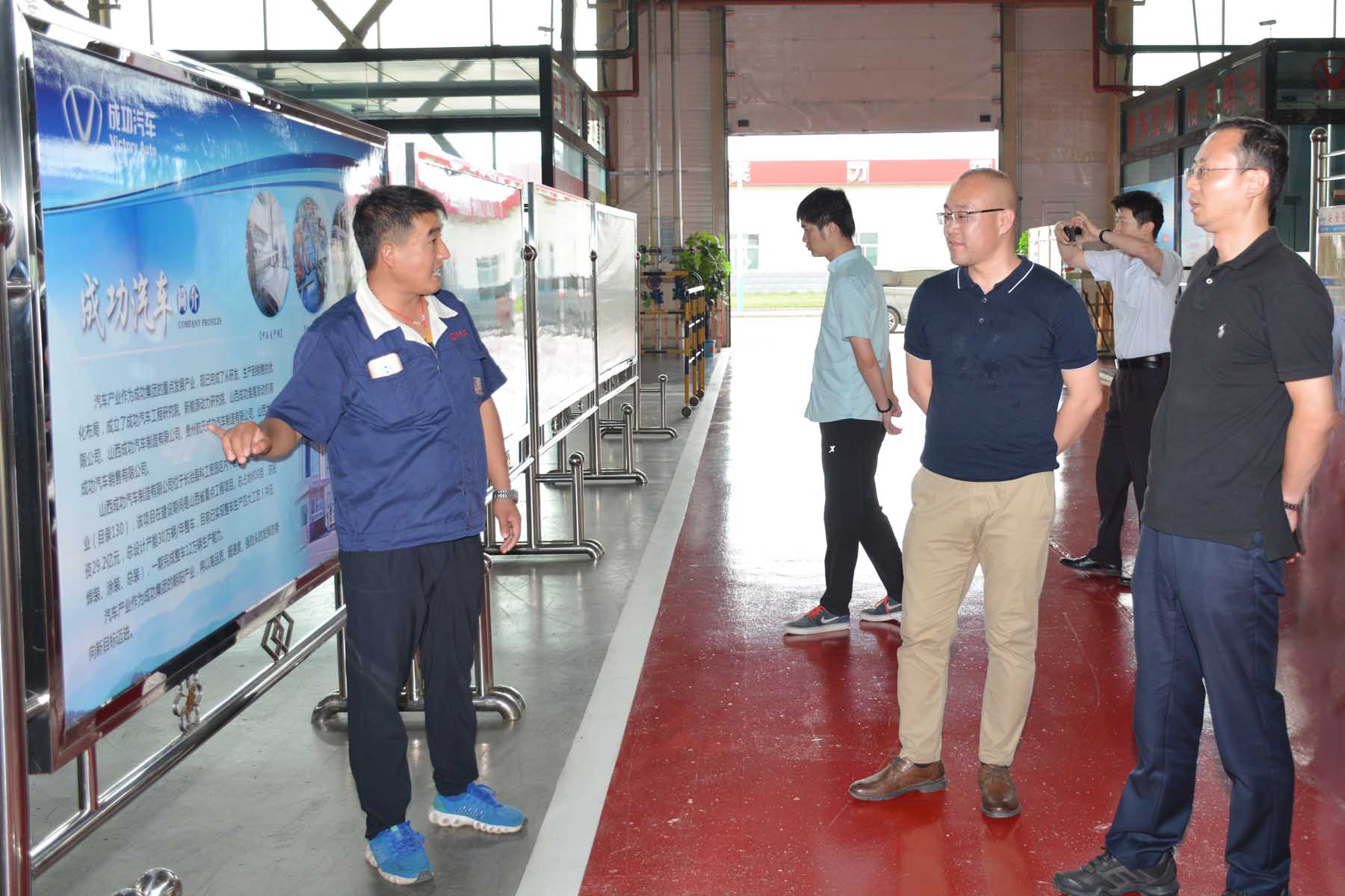 当日下午,在集团常务副总裁马帅及有关部门负责人的陪同下,客人专程到成功汽车进行了参观,成功汽车总经理许宏泉等热情接待并介绍了成功汽车的相关情况。客人对成功汽车冲、焊、涂、装四大生产线和400服务平台中心以及成功汽车新能源换电服务共享平台备感兴趣,期间,客人还试乘试驾了成功新能源物流车及企鹅牌出租车,对其性能和舒适度给予了一定的好评。