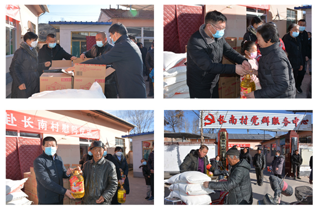 2017年以来,武乡长南村作为威廉希尔中文网站的定向扶贫点,就与集团结下了深厚的情谊。2021年春节将至,集团对长南村村民过年准备情况很是牵挂。1月30日早上7点,受集团总裁委托,党委书记陈建法、综合管理部部长申雷明、审计监察部部长田迎春、法务部部长刘新超等工作人员组成的慰问小组就出发到长南村组织节前慰问。