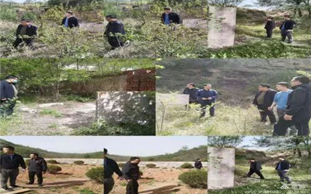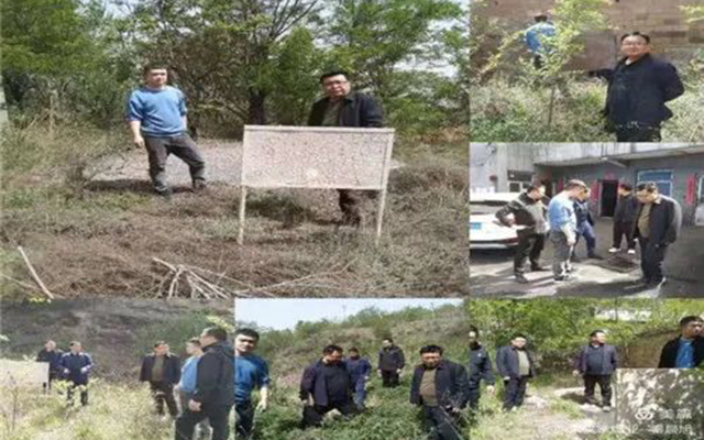 检查人员不畏天气酷热,不惧杂草丛生,攀爬荆棘树林,脚踏羊肠小道,实地查看矿区地形地貌,每到一处,手摸耳听封闭井筒有无漏风情况,仔细查看地表有无裂缝塌陷。