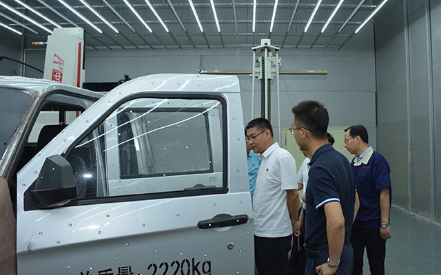 会后,集团领导陪同陈董事长一行走进成功汽车的试制车间进行了参观。汽研院副院长蔡勇引导领导们先后参观了整车环境仓、电池系统三综合试验仓、盐雾实验室、电机测工平台、油泥造型室,并随机进行了全面详细的介绍。
