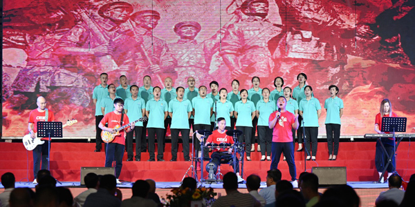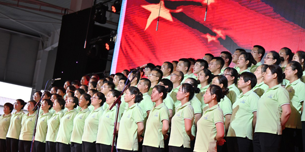 之后,由联盛公司、新组成的成功乐队、以及成功汽车的代表,先后给大家带来了《打靶归来》、《一二三四歌》;《舞动成功情》;《国际歌》、《映山红》;《祖国不会忘记》、《中国,中国,鲜红的太阳永不落》等红色革命歌曲,表达对党、对国家、对集团的感恩之情。