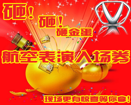 据成功汽车官方微信,成功汽车“砸金蛋”,于2014年8月13日火热上线,凡砸中者,可赢取免费参观成功汽车动力跳伞、投放热气球、三角翼和航模表演、以及现场抽奖活动的入场券。