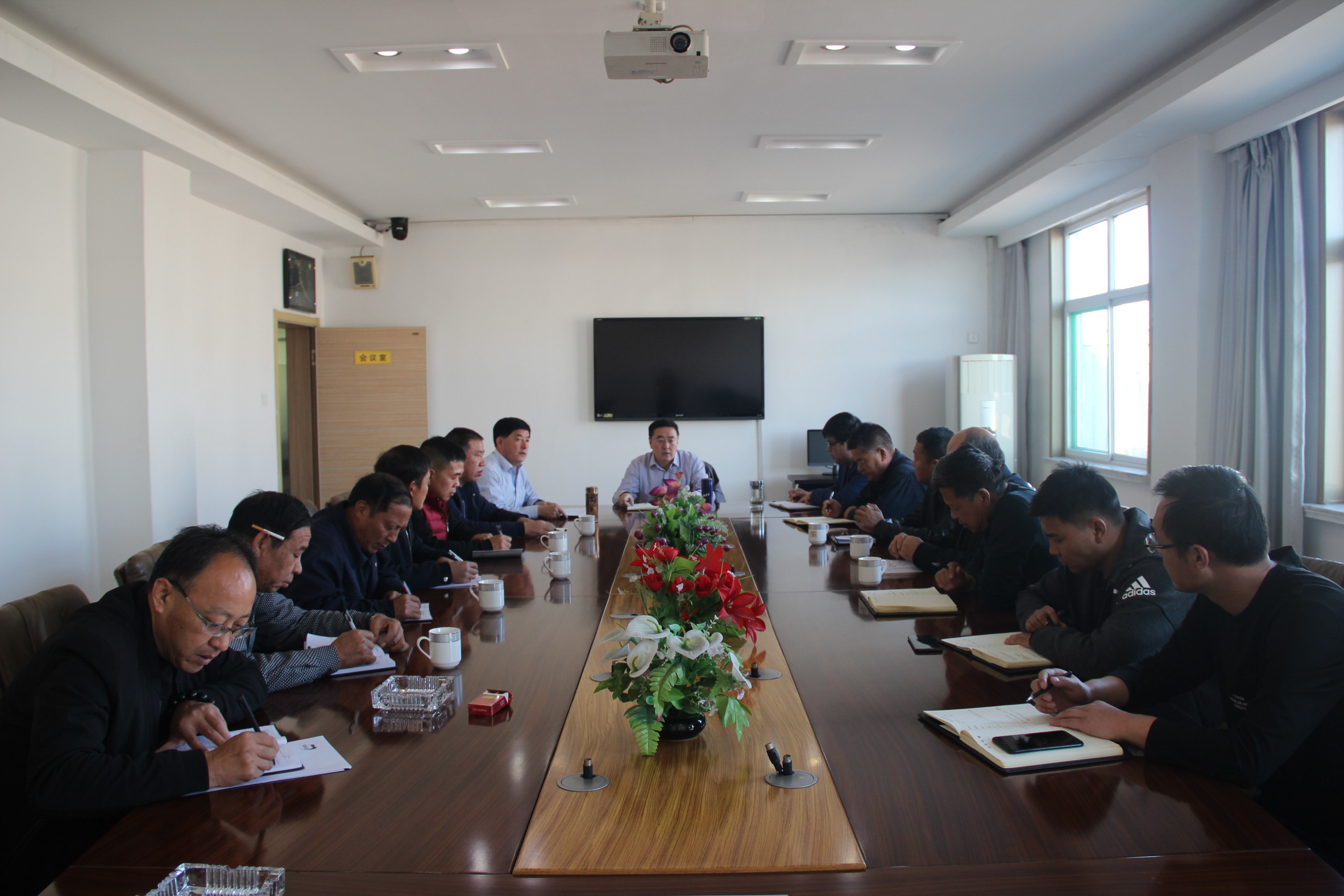 2018年10月29日上午,联盛公司组织扶贫机构全体人员召开精准扶贫工作推进会,联盛公司董事长宋建明、副总经理马国军、段长明、生产副经理常永发、综合部部长赵和平、各矿董事长及驻村扶贫队长参加了会议,会议由董事长宋建明同志主持。