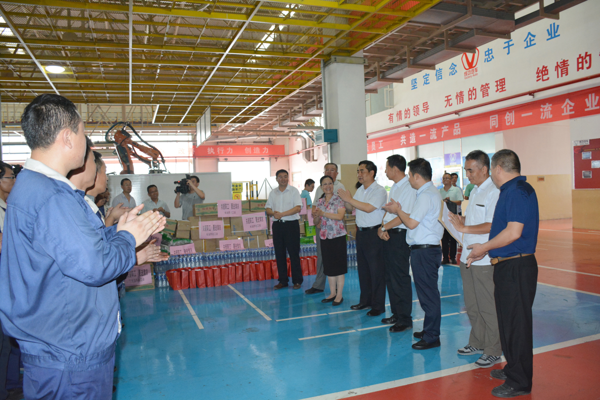 7月26日上午,长治市人大副主任、总工会主席崔建泰、市总工会调研员李燕、副调研员王国斌、法保部长平小强及长治县委书记裴少飞、县长王现敏等在集团董事长马国利、汽车事业部总经理赵连旗、副总经理兼工会主席高利平、长治车厂总经理吴丰陪同下到成功汽车焊装车间进行防暑降温措施监督检查、开展高温防护、慰问一线职工。