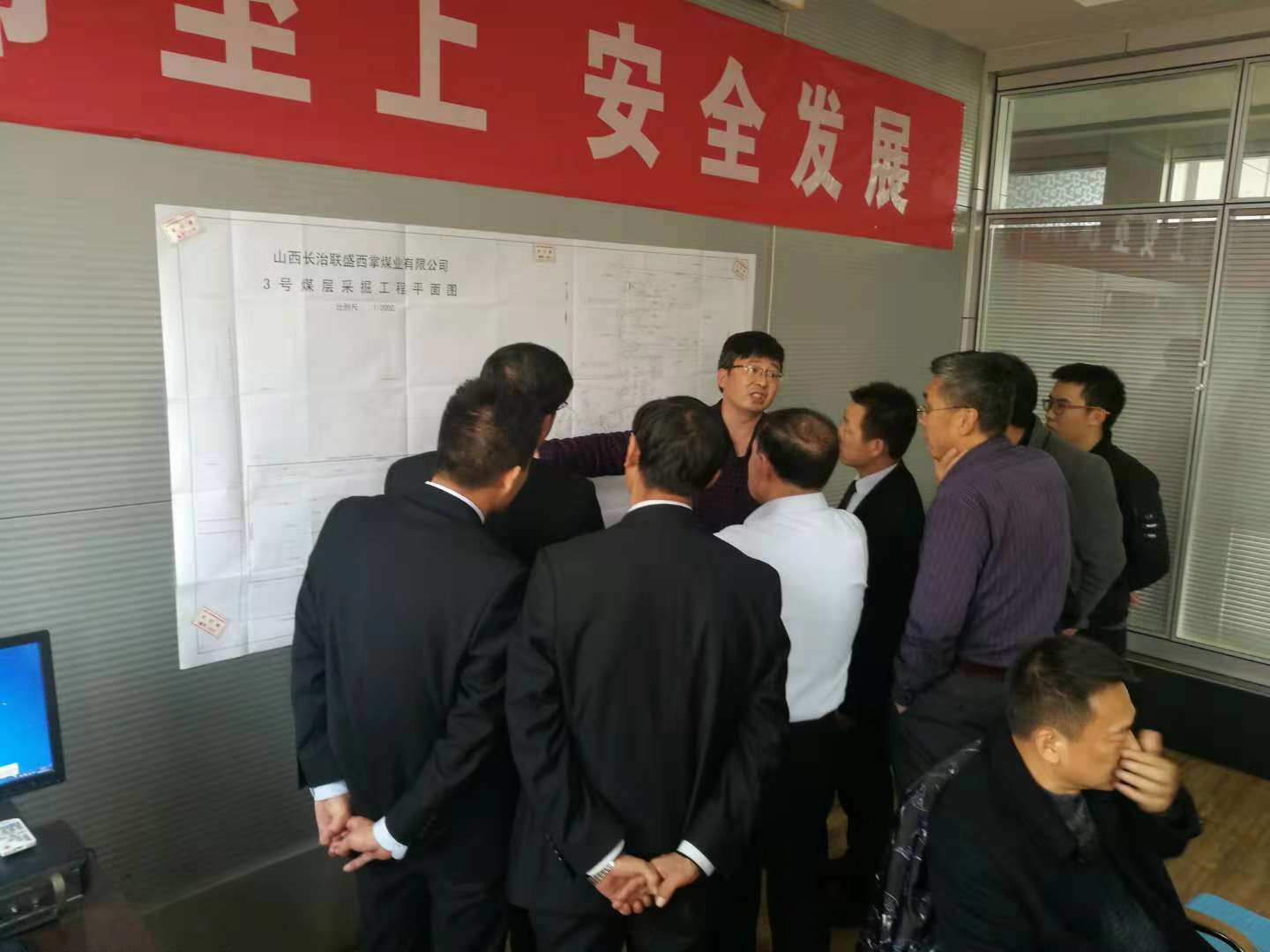 11月11日,长治县煤炭工业局联合天成元专家组在西掌煤业进行“专家会诊”。联盛公司总工程师赵有功、西掌煤业董事长朱付生、矿长张建军及各分管矿领导、相关科室有关人员与县局和专家积极对接相关工作并对提出的意见和建议作了详细的记录与汇总。