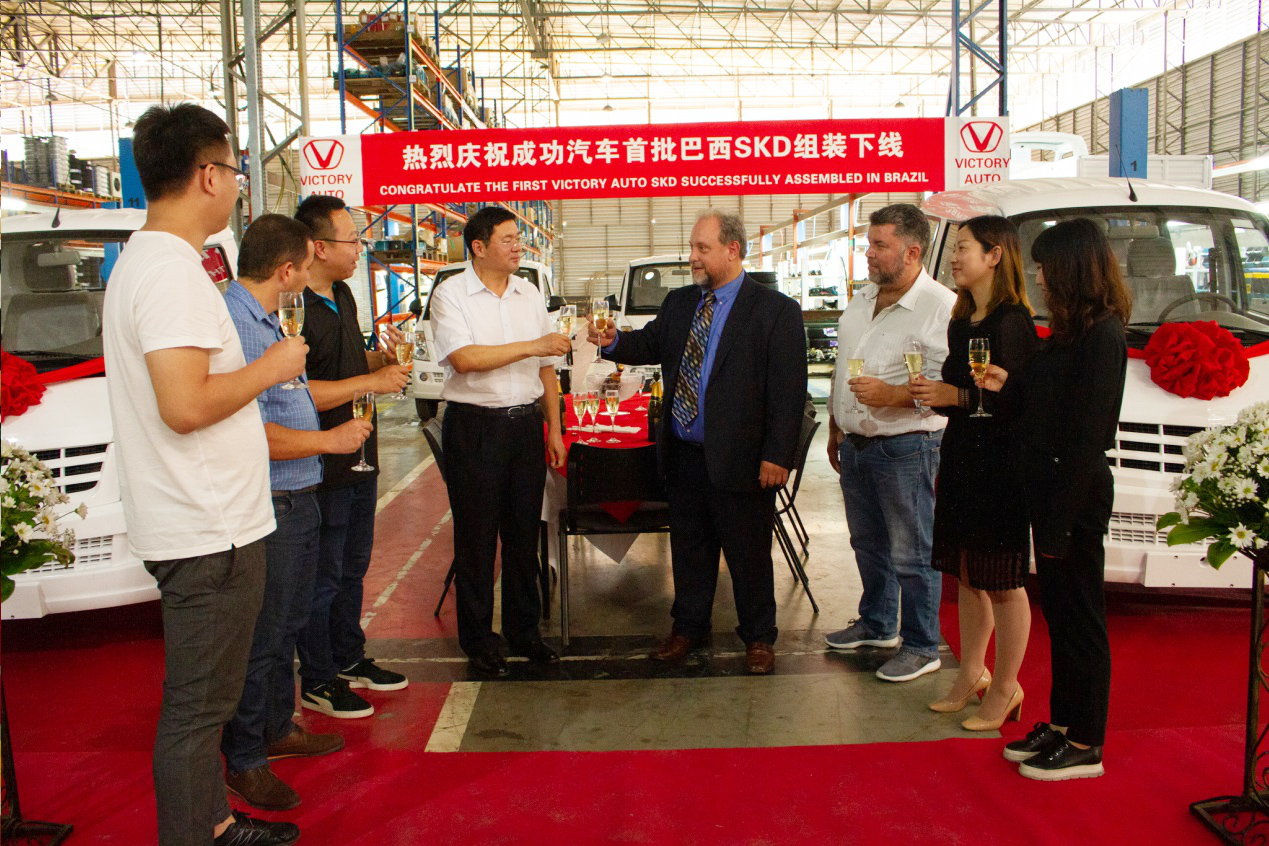 双方代表为成功汽车巴西KD组装工厂首台下线共同举杯