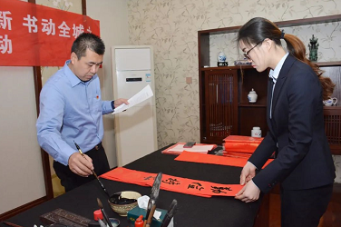 春联送祝福,情深意更浓。1月19日上午,浦发银行长治分行 “靠浦迎新 书动全城”送春联活动走进威廉希尔中文网站总部,特邀请长治知名书法家李军一行,为广大员工现场书写春联,送“福”字,在浓浓年味中传递新春祝福,给新年带来一份暖意。