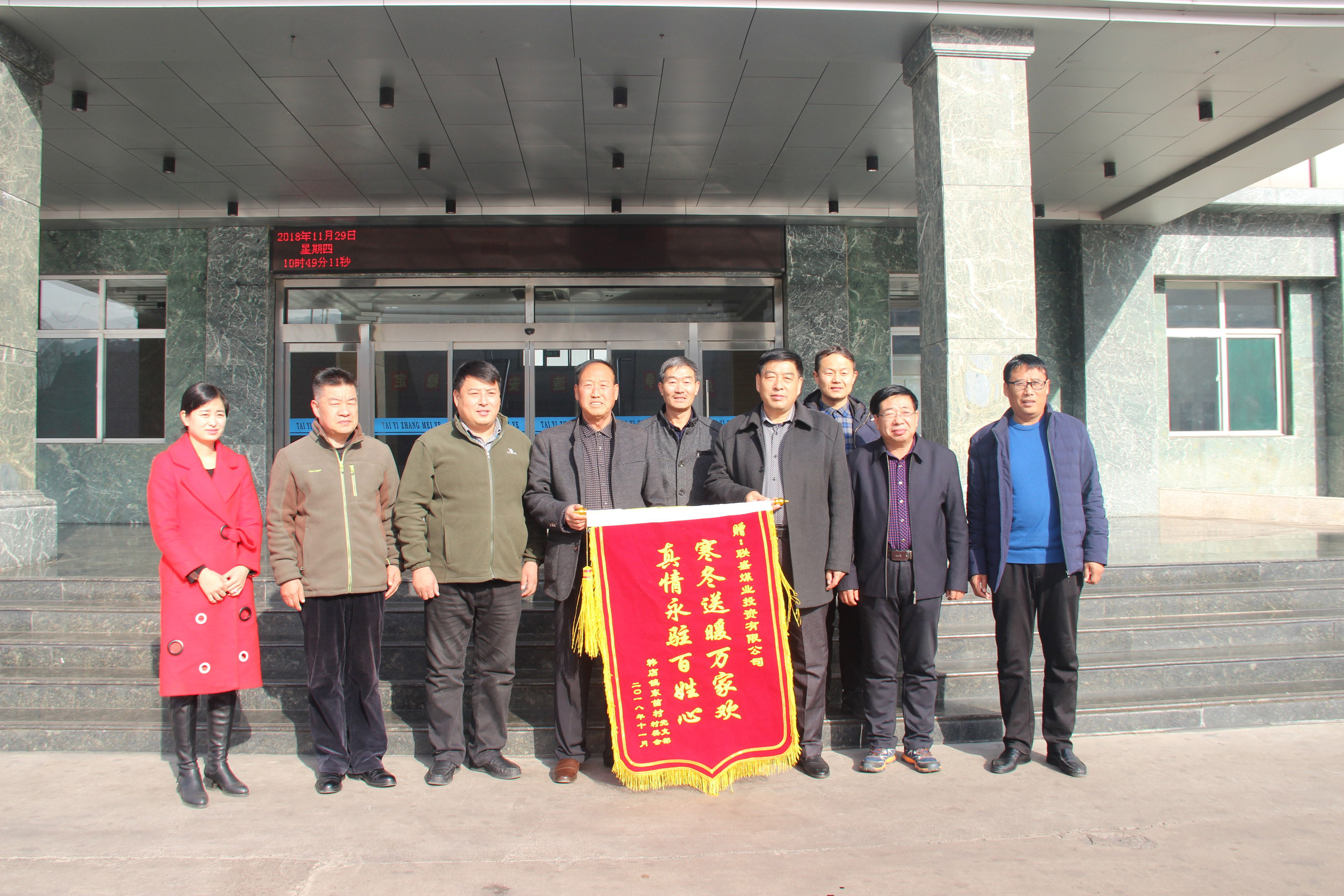 11月29日上午,上党区韩店镇及东苗村两委负责人将一面写有“寒冬送暖万家欢、真情永驻百姓心”的锦旗送到联盛公司。联盛公司总经理李法俊、生产副总经理常永发、机电副总经理随中平热情接待了镇村负责人,并同他们进行了座谈交流。